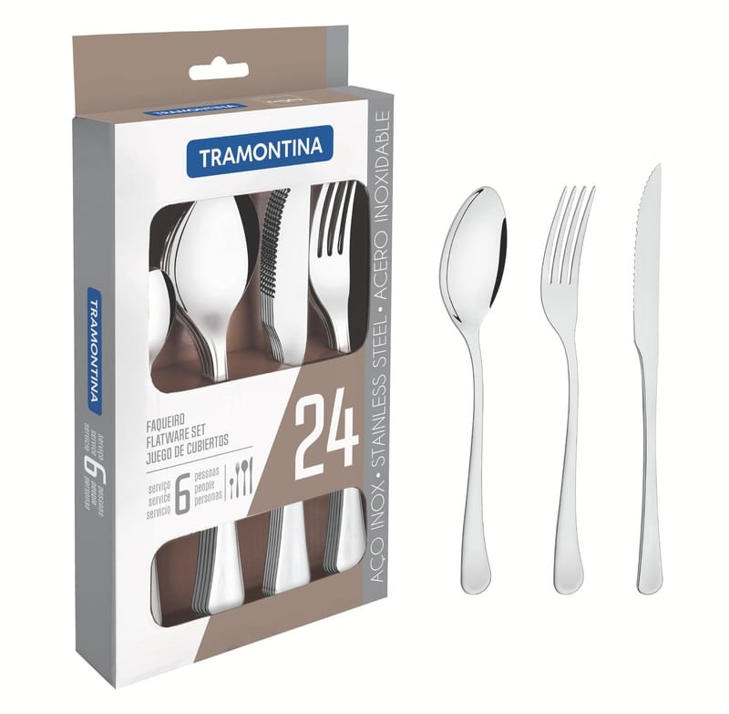 Faqueiro Tramontina Havana Inox Com Faca para Churrasco 24 Peças