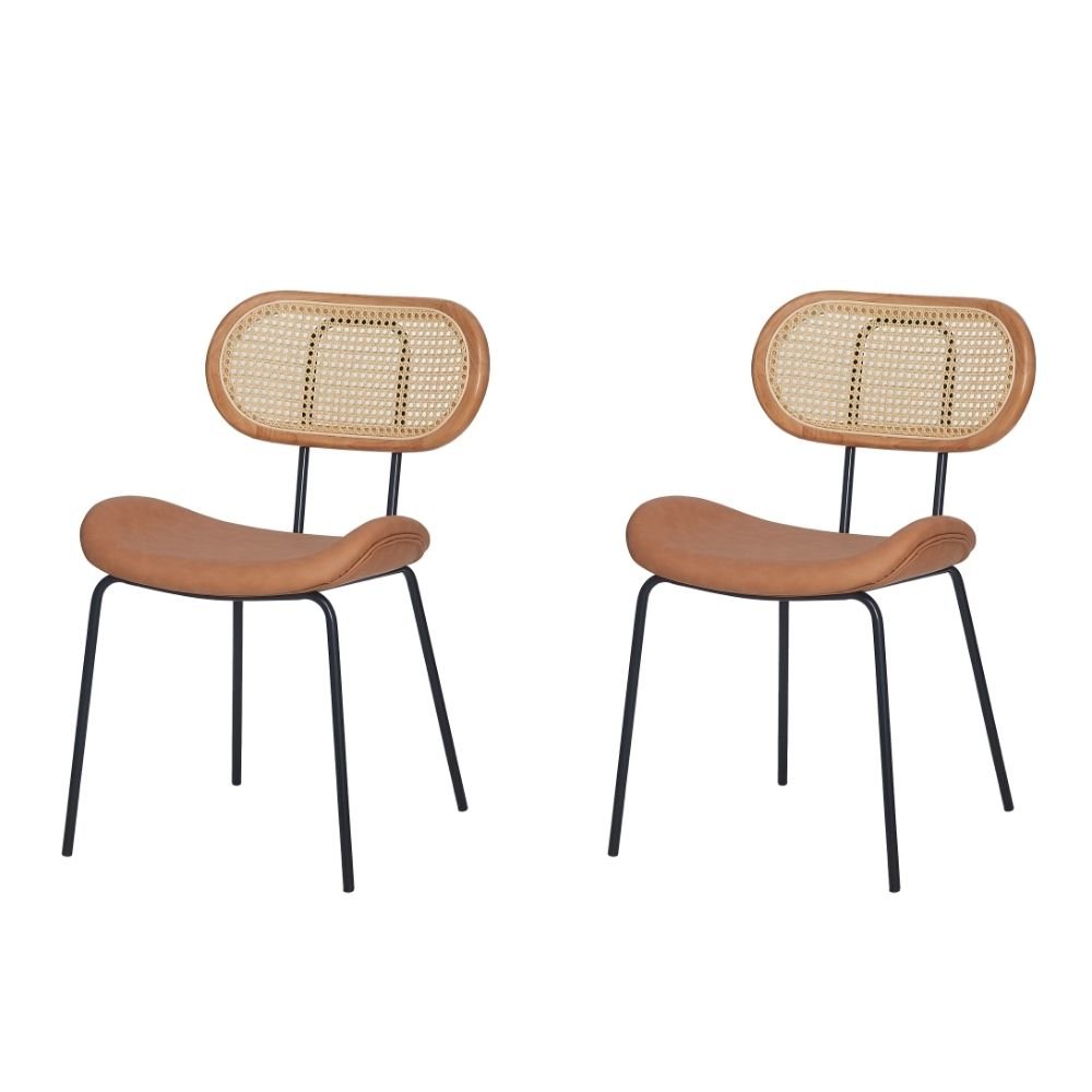Kit 2 Cadeiras Toscana Fratini Aço Preto Encosto Madeira Tela Rattan Sintética Assento PU Caramelo