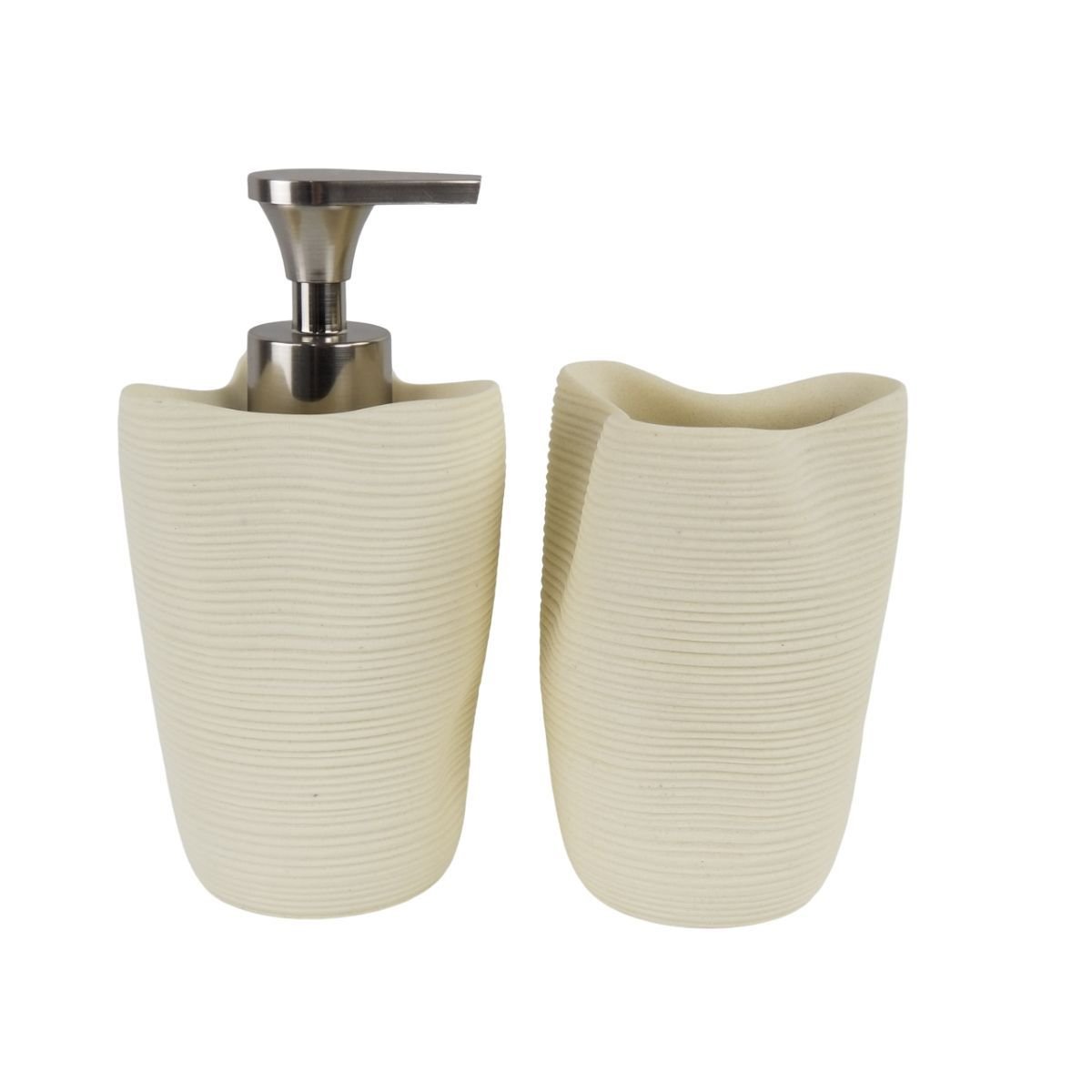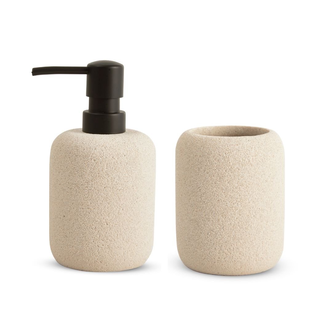 Kit Banheiro Lavabo Dispenser e Porta Escova Laradore Bege
