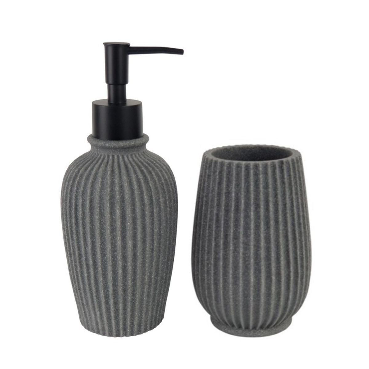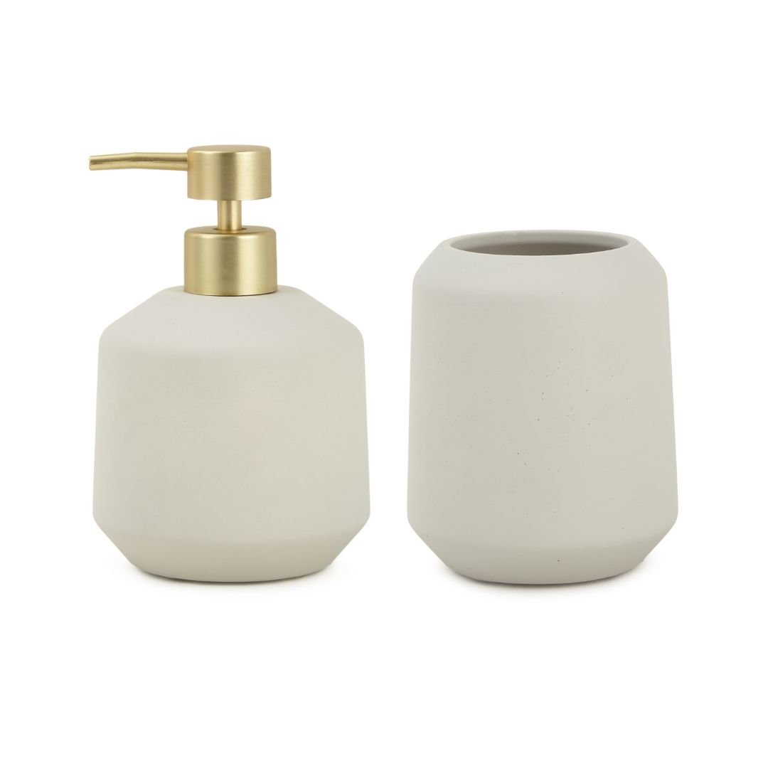 Kit lavabo cinza Mart - Porta-sabonete líquido e copo