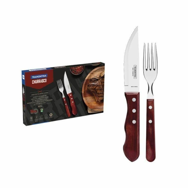 Jogo de Talheres para Churrasco Jumbo em Aço Inox com Cabo Vermelho Polywood 12 Peças 21199796 Tramontina