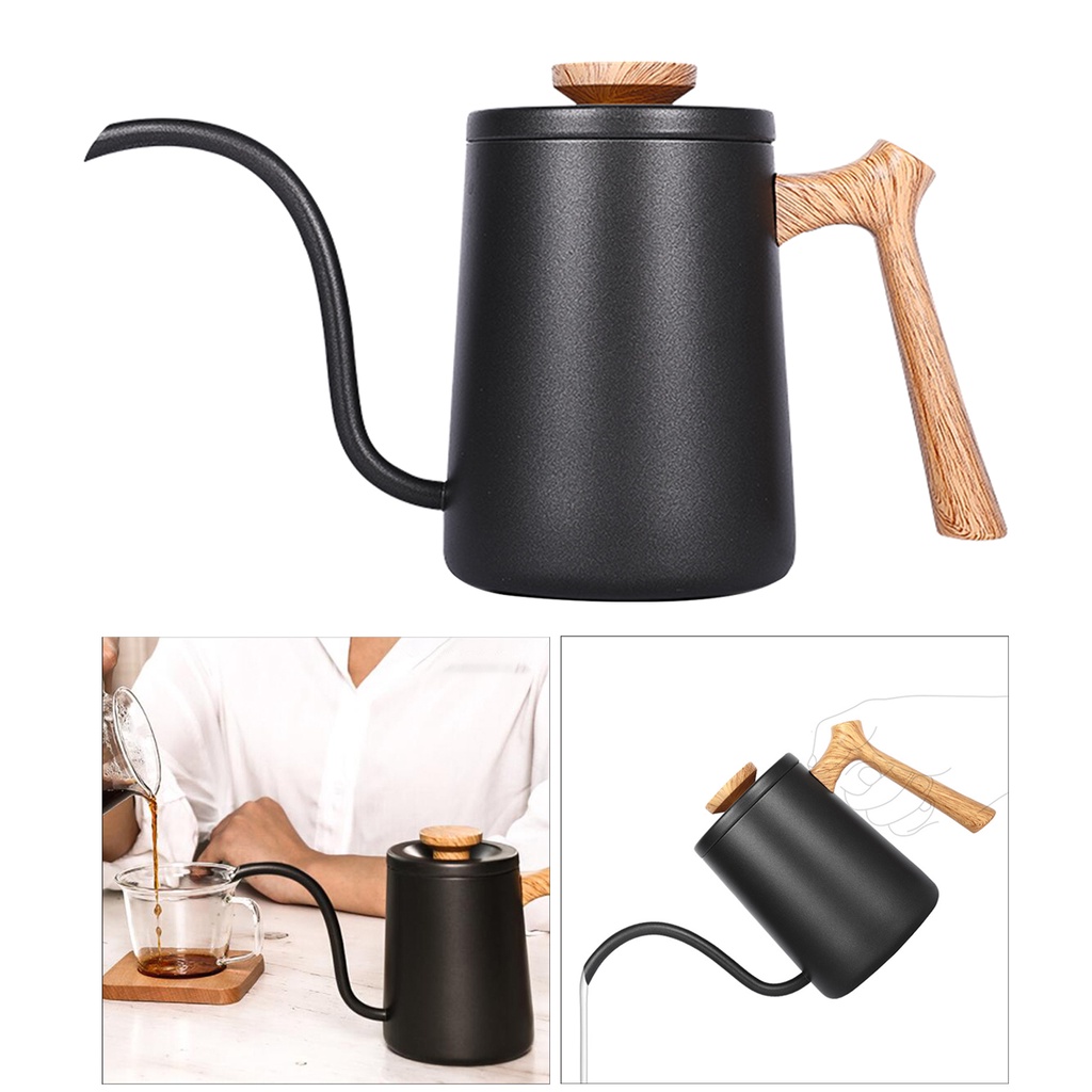 (Preço De Choque) Pour Over Café Pote De Aço Inoxidável 600 Ml Expresso Mão Gotejamento Chaleira Punho De Madeira Bico De Ganso Chá Para