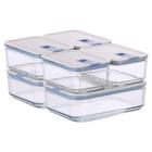 Conjunto de Potes de Vidro Herméticos Retangulares - Tampa com Alavanca - 6 Unidades - Perfect Seal