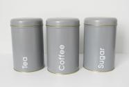 Kit Latas Café Açúcar Chá para Mantimentos em Metal Cinza