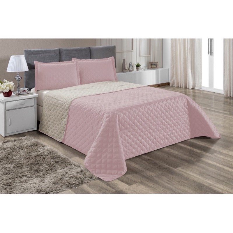 Kit Cobre Leito Colcha Casal 3 Pecas Dupla Face Micro Percal 150 Fios Matelado Pastilhas
