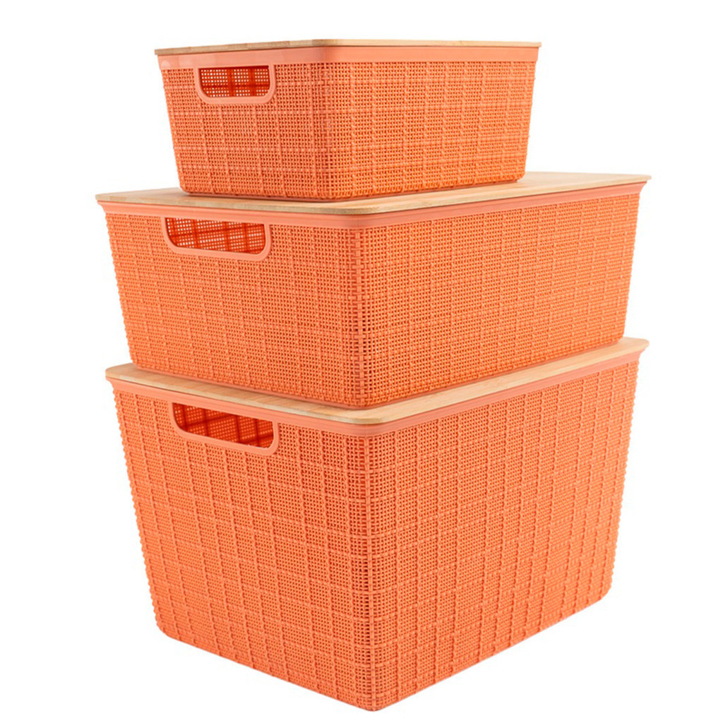 Kit 3 Caixas Organizadoras com Tampa de Bambu Multiuso Terracota 4L, 12L e 18L - Oikos