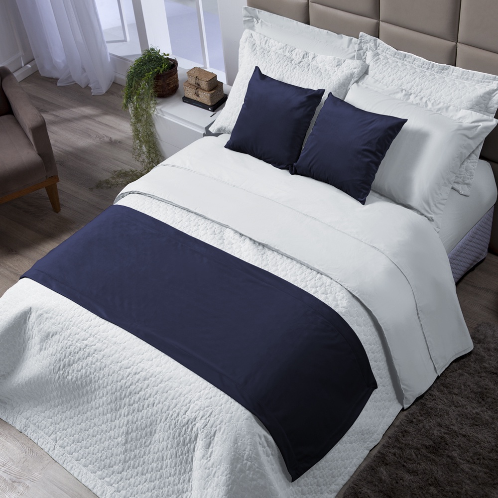 Kit Edredom 100% Algodão Percal 150 Fios Dupla Face Solteiro Gran Moratta + Jogo de Cama 5 peças - Azul/Branco