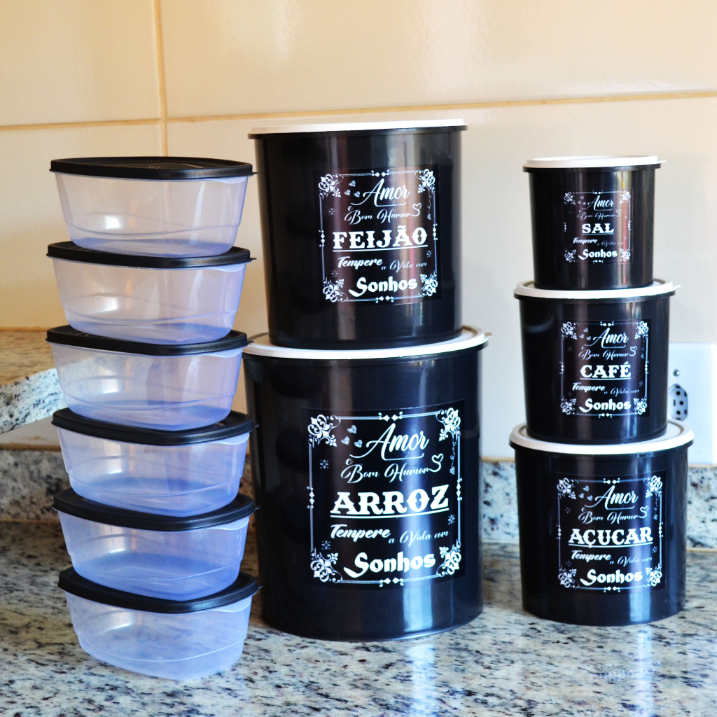 Kit 11 Peças Mantimento jogo plástico/ porta mantimentos e organizadores de cozinha com Decopagem Melhor qualidade
