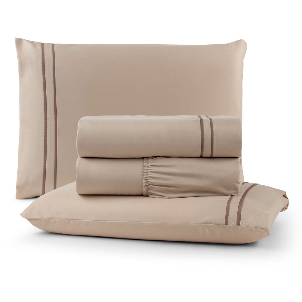 Jogo De Cama Lençol Casal Padrão Com 04 Peças Ponto Palito Percal 200 Fios