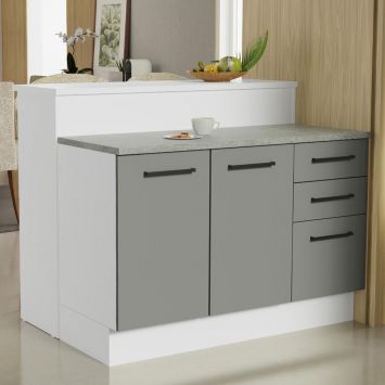 Ilha de Cozinha com Bancada e Balcão 120 cm Branco/Cinza Agata Madesa