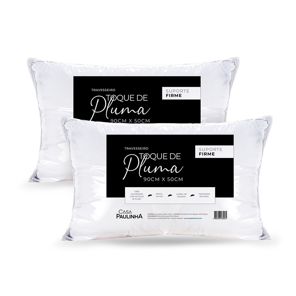 Kit 2 Travesseiro Toque de Pluma Suporte Firme Percal 180 Fios 90cm x 50cm