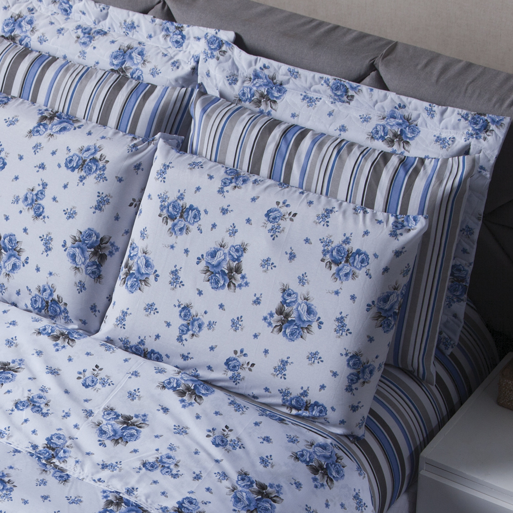 Jogo de Cama Queen 4 Peças Lençol com Elástico 100% Algodão Percal 180 Fios 158x198x35cm Dohler - Emcompre