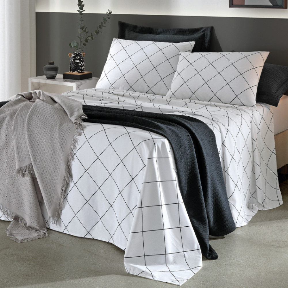 Jogo de Cama Queen 4 peças Lençol com Elástico 100 Algodão Percal 130 Fios - Dohler