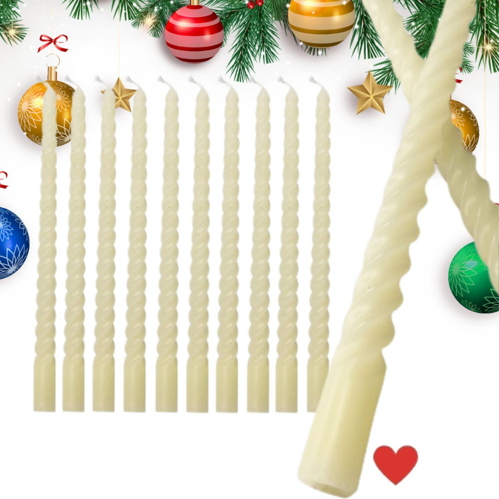 Kit 10 Vela Natalina Decorativa 25cm Branca c/ Brilho Parafina Espiral p/ Castiçal Decoração de Mesa Natal Casamento Batizado Festas Eventos