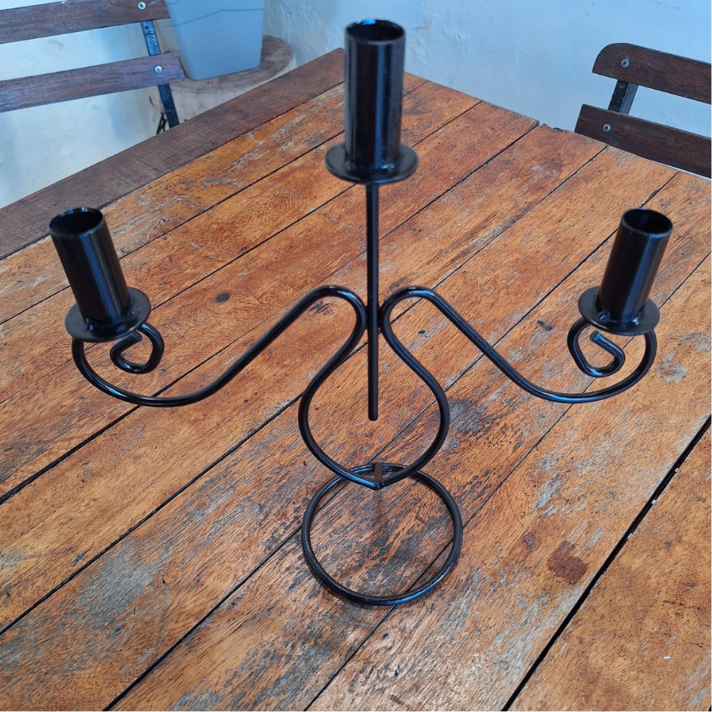 Castiçal Candelabro Porta Vela Ferro Mesa Jantar Centro Preto