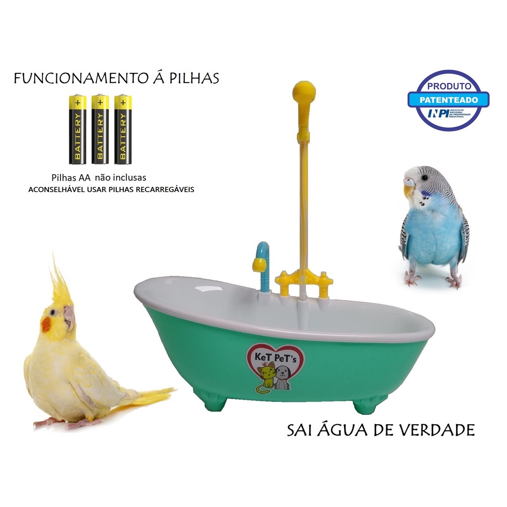 Banheira Para Pássaros Calopsita Periquito Automático Pilhas Sai Água Envio Imediata