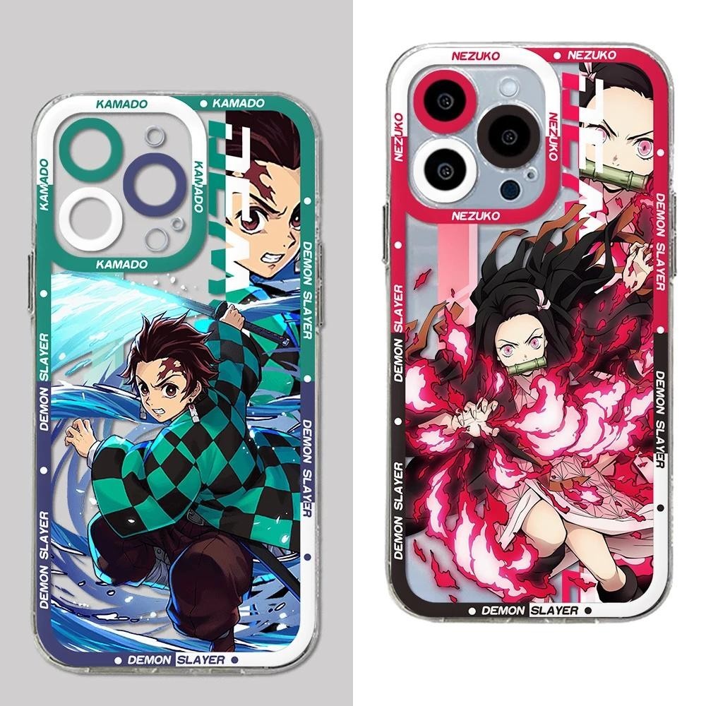 Anime Demon Slayer Tanjirou Nezuko Zenitsu Capa Para Iphone 11 12 13 14 15 Pro Max 6 6S 7 8 7 Plus 13 Mini XS XR SE 2022 De Celular Proteção Quadrada De Silicone Transparente Macia