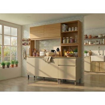Cozinha Compacta Peru 5 Portas 1 Gaveta Amêndola e Nude