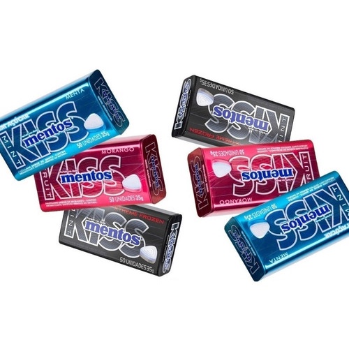 Pastilha Mentos Kiss sem Açúcar Morango ou Menta Forte ou Menta 35g - 01 unidade