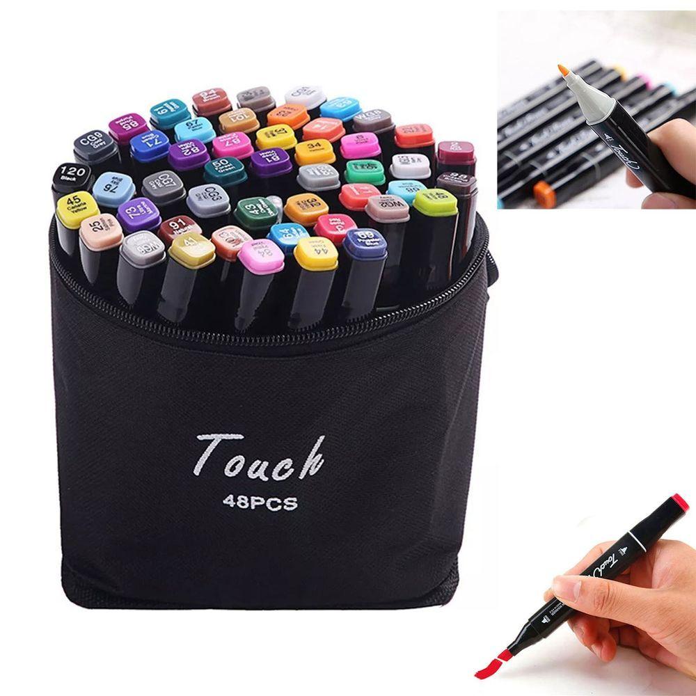 Caneta Marcador Permanente 48 Cores Ponta Dupla Estojo Desenho Pintura Arte Estudante Trabalho Escola Lazer Diversao