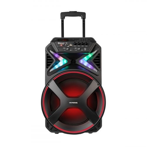 Caixa de Som Amplificada Portátil Mondial 400W Rádio FM Bluetooth USB Bateria Boca de 12 CM-400 C/Rodinha
