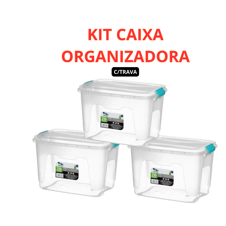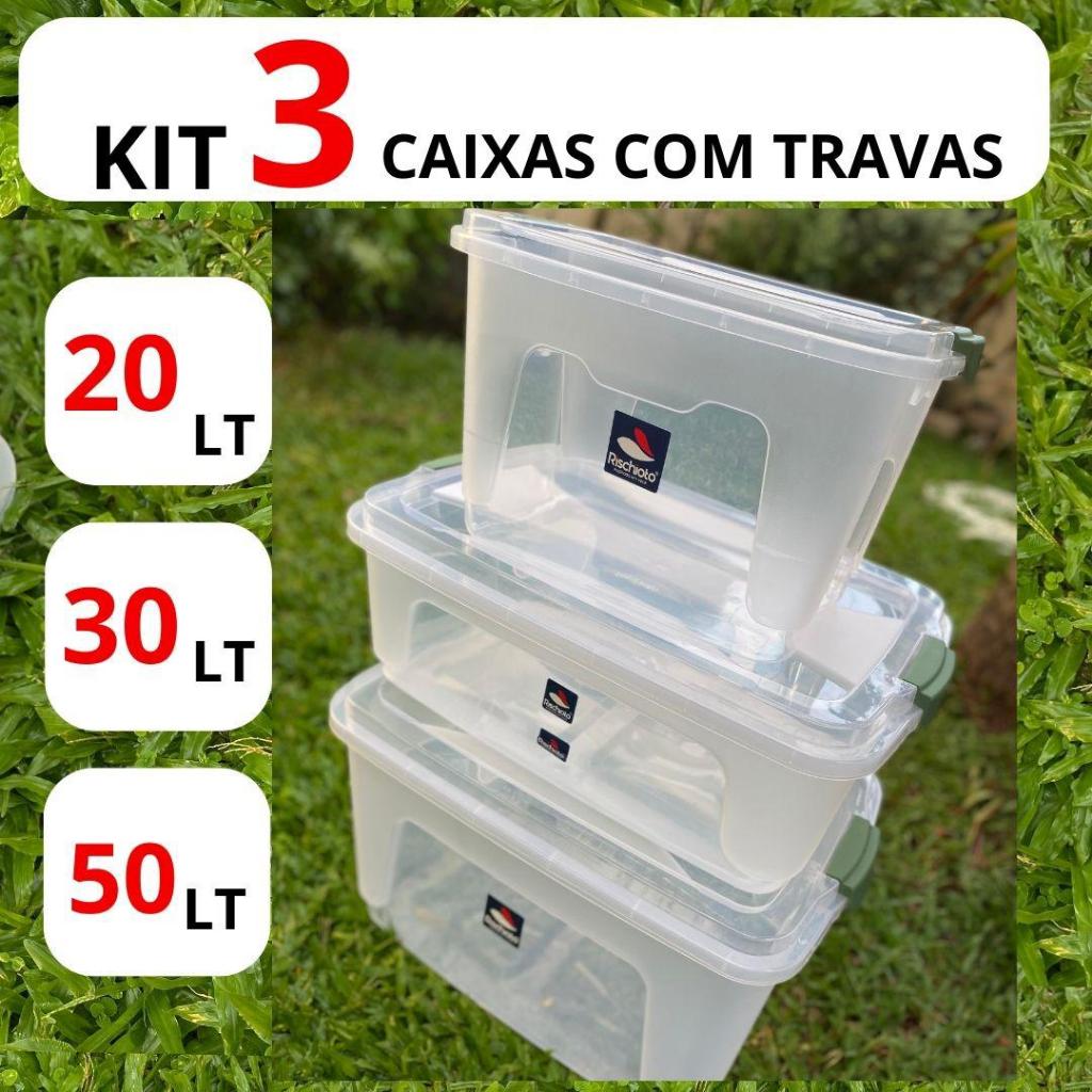 Kit Caixa Organizadora 20L + Caixa Organizadora 30L + Caixa Organizadora 50L - Rischioto - Essa Caixa É Perfeita Armazenar Roupas Sapatos Objetos...