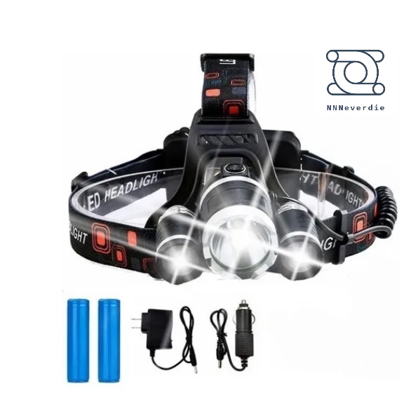 Lanterna De Cabeça Triplo 3 Led Profissional Recarregavel