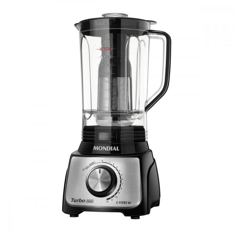 Liquidificador Mondial Turbo Premium L-1000 BI Jarra de San Cristal 3L 1000W 12 Velocidades Preto e Inox 110V
