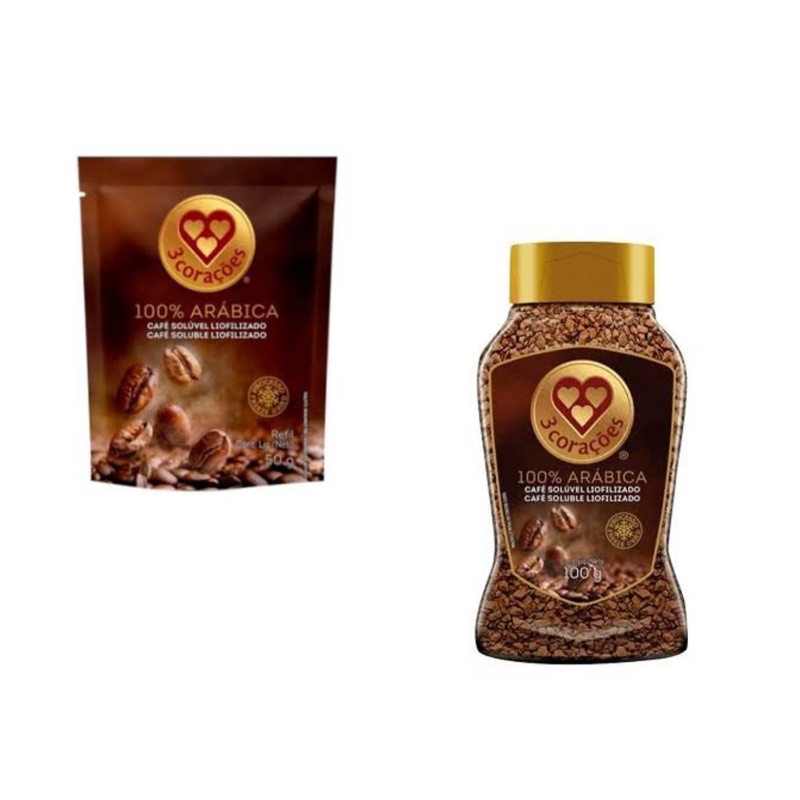 Café Liofilizado Instantâneo 100% Arábica 3 Corações Solúvel - Opções