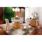 Conjunto: Mesa de Cozinha Havana c/ Tampo Madeirado Canto Curvo 120x80cm e 4 Cadeiras Dafne Naturale - Linho Bege - Rufato