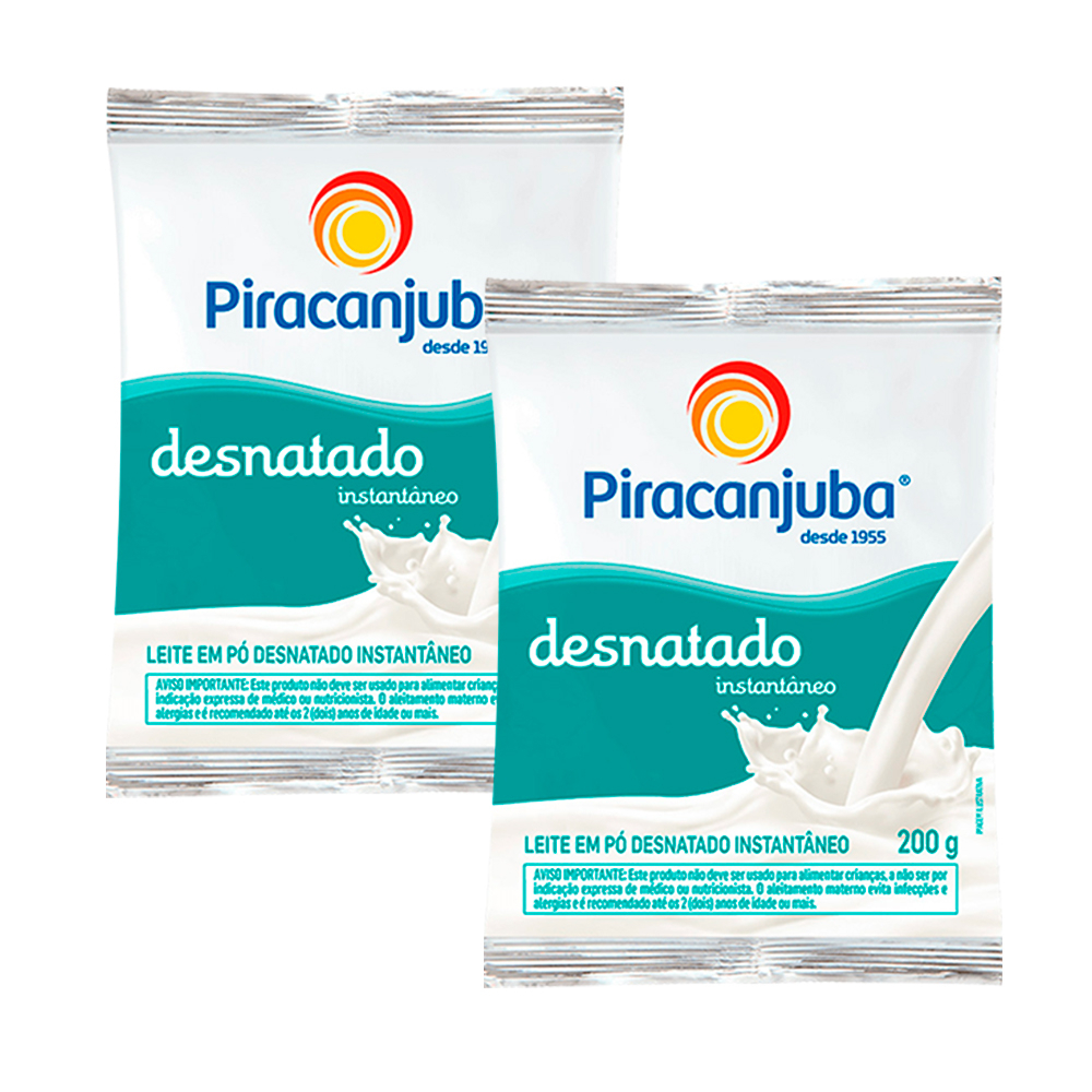 Leite em Pó Piracanjuba Instantâneo Desnatado - 200g (Kit com 2 Unidades)