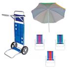 Carrinho para Praia Mor Alumínio, Guarda-Sol 1,8 Metros e 3 Cadeiras, Cores Sortidas