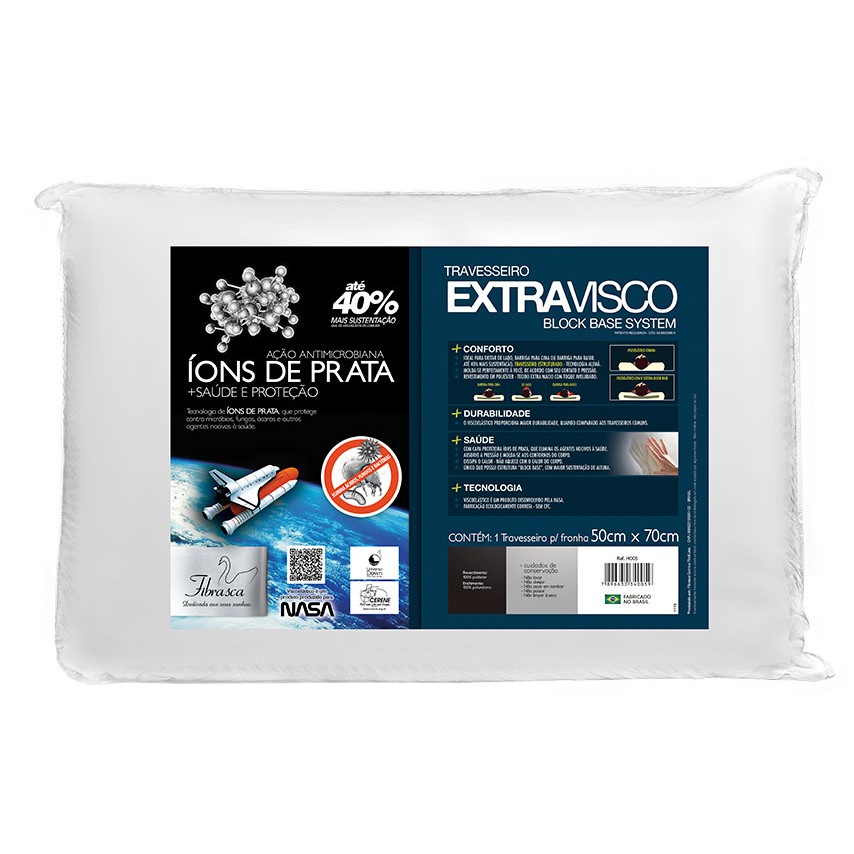 Travesseiro Nasa Alto Extra Visco Íons de Prata Antiácaro Fibrasca