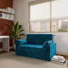 Sofá-Cama Casal 2 Lugares Turmalina Veludo com Baú e Almofadas Azul