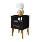 Mesa de Cabeceira Nicho Mesinha Quarto 1 Gaveta Puxador Concha Lauren Estilo Retrô - Preto/Freijó - Lojas RPM