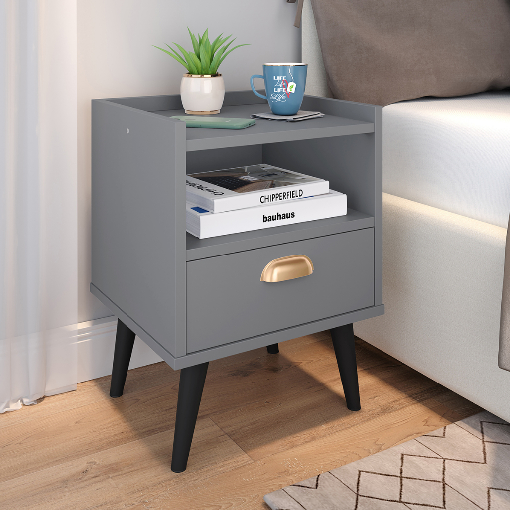 Mesa Cabeceira com 1Gaveta e puxador concha nicho, mesa cabeceira estilo com puxador concha, mesa de cabeceira 1 gaveta