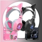 Fone Headset Gamer Gatinho GT-64 com Fio e LED RGB - Orelhas Removíveis, Microfone e Controle de Volume - Goldenultra
