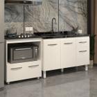 Balcão Armário Cozinha Gabinete de Pia 120 cm Bruna e Balcão para Fogão Cooktop 4 Bocas e Forno Evelyn Savana Off White - Mobília Decor