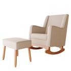 Poltrona de amamentação Eloísa com balanço e puff linho bege