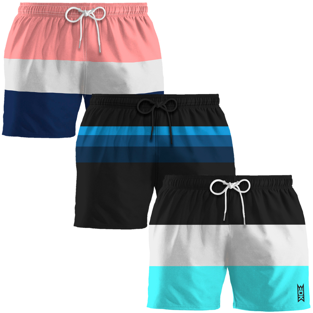 Bermuda Masculina kit 3 Short Praia Tactel Mauricinho Com Bolso Curta Leve Esportes Academia