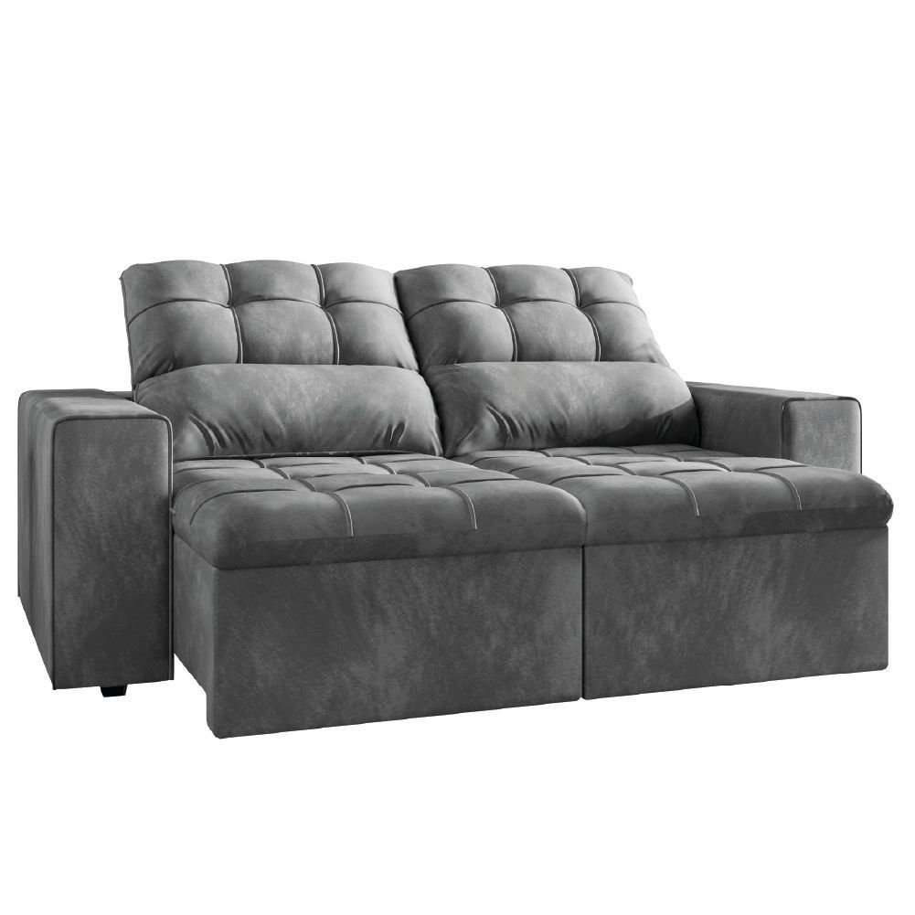 Sofá Retrátil e Reclinável 3 Lugares - 2 Metros - Veludo importado - Pillow top Espuma D33 - Cinza