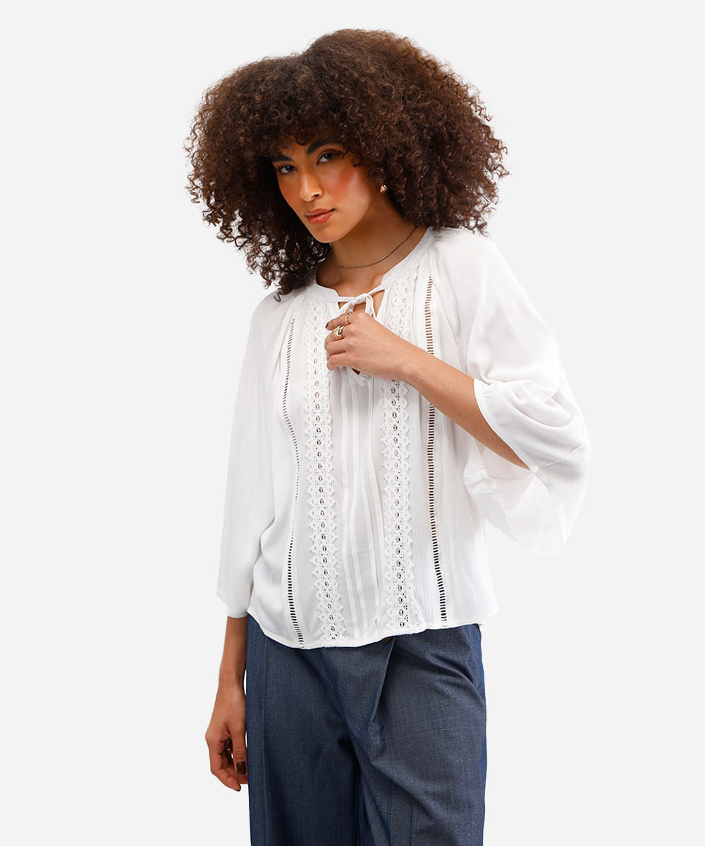 bata feminina de viscose com renda off white