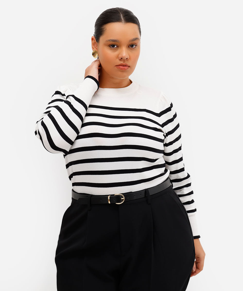 BLUSA DE TRICÔ MODAL MANGA LONGA blusa feminina tricot listrada listras cropped sueter outono inverno