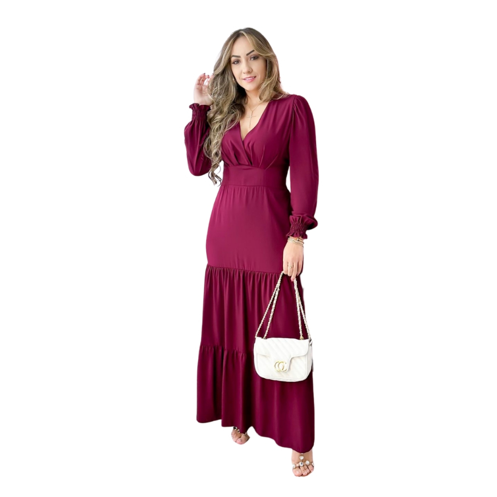 Vestido Longo Feminino Manga Longa Princesa Bufante Decote