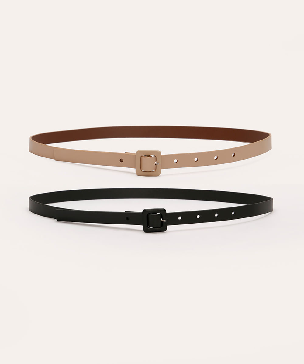 kit de 2 cintos finos com fivela quadrada de metal multicor