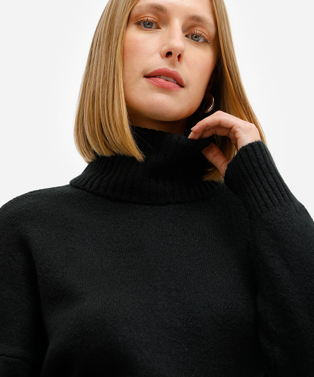 suéter oversized de tricot texturizado preto