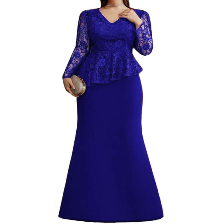Vestido Longo De Festa Plus Size Com Renda E Malha Ps47