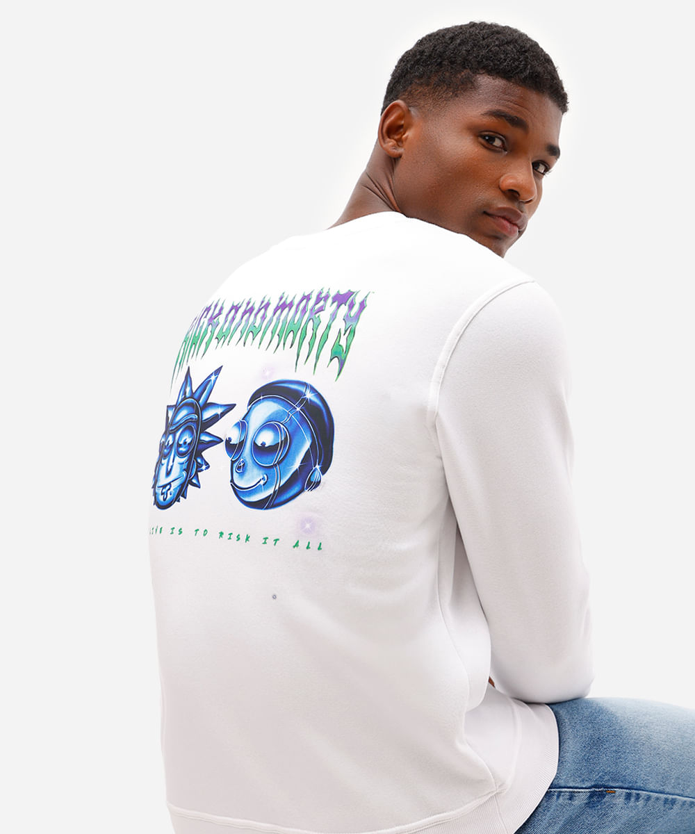 blusão masculino de moletom manga longa rick and morty off white