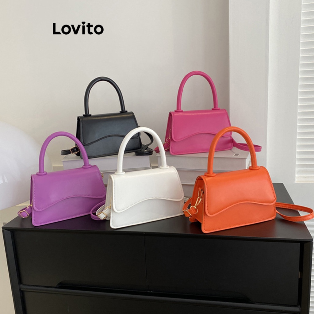Lovito Bolsa Feminina Casual Lisa E Irregular Quadrada L57AD119 (Rosa Choque/Branco/Roxo/Preto)