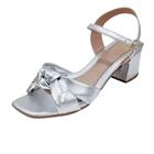 Sandália de Salto Grosso Médio Confortável com Fivela Prata Dourada Jeans Ref. 30/86